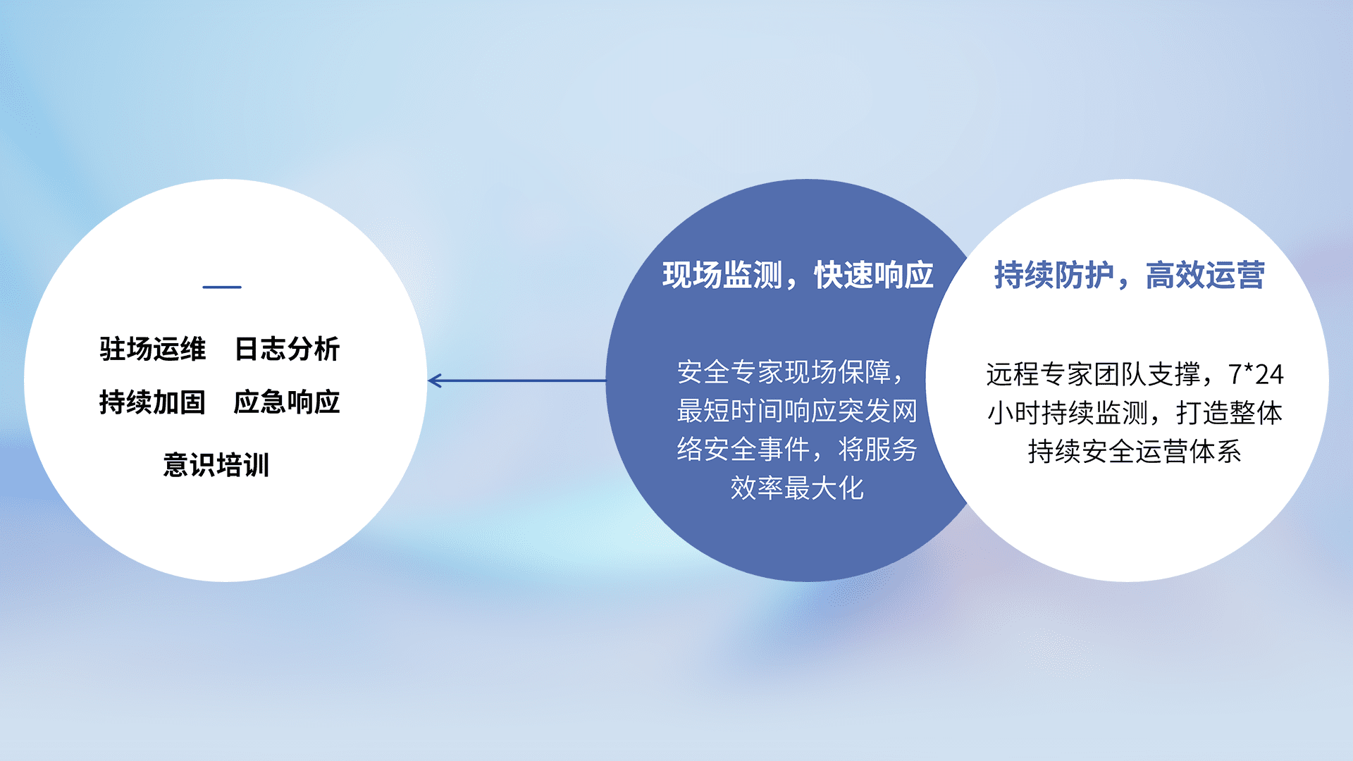 7X24小时持续监测安全事件,保持安全策略有效性,降低资产脆弱性风险,,精准拦截黑客攻击,,,,减少被黑客利用的机会,,,第一时间遏制,,降低损失。。。
